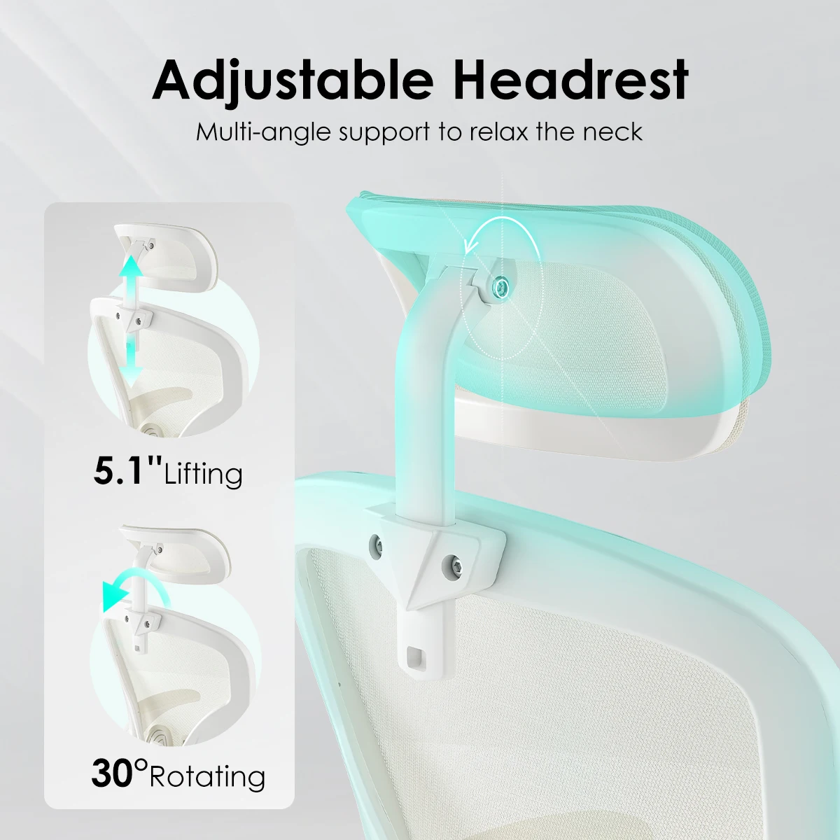 ERGONOMIC OFFICE CHAIR – Are you struggling with your office chair isn't comfortable? Congratulation, you find the most comfortable home office desk chair. This ergonomic office chair use an unique backrest to fit the natural ergonomic curve. Also the ergonomic mesh office chair has a adjustable lumbar support which can help you fix your sit positionHEAD & LUMBAR SUPPORT – the desk chair is designed with a lumbar support system that adjusts up to 2 inches vertically, perfectly contouring to your waist and back curves to protect spinal health. The headrest offers 5.1 inches of height adjustment and 30° rotation, allowing you to freely switch postures and relax your neck at any time