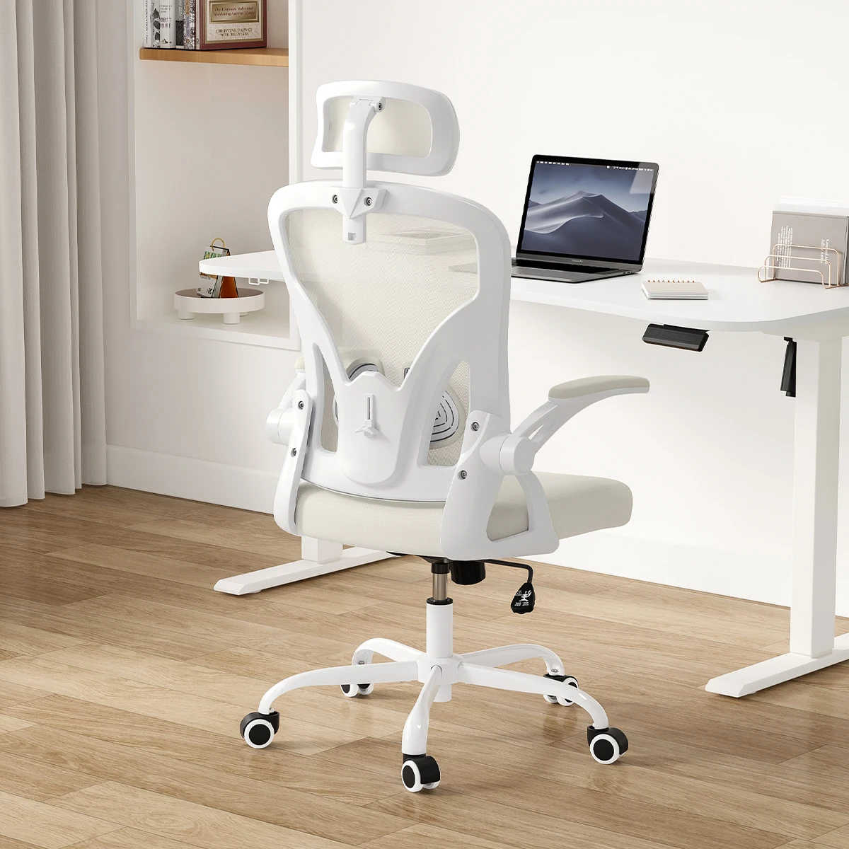 SAVING SPACE – The home mesh desk chair can save space for you, because the armrests of desk office chair could be flipped up to 90 degree, and then you can put your mesh office chair under the desk when it's not in used. So our ergonomic desk chair could be used in anywhere in your bedroom, study room and gaming room or office