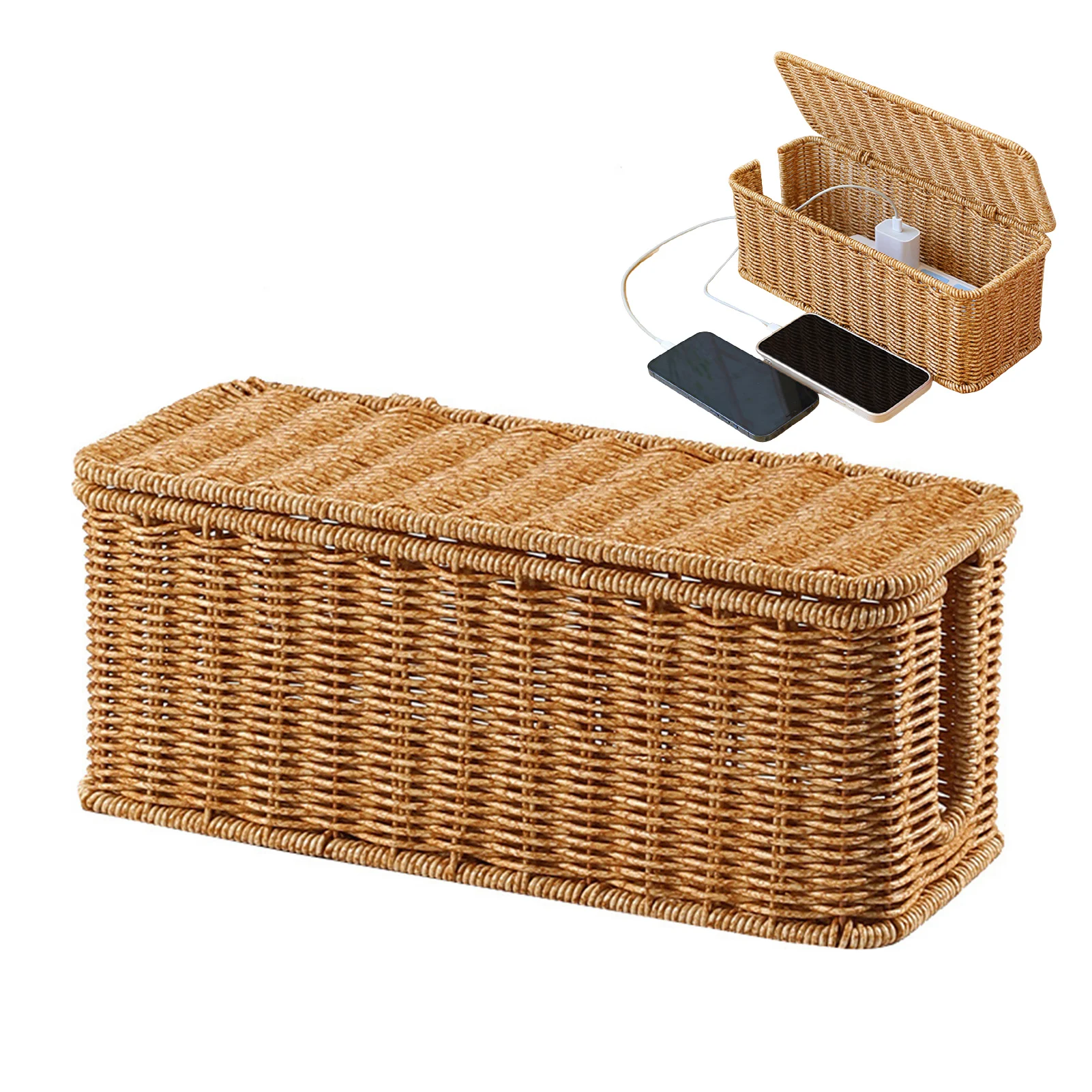Neat and Tangle-Free Organization: Our Hand-Woven Cord Cable Storage Box provides a practical solution to keep your cables and wires neatly organized, eliminating the hassle of tangled cords and cables. With designated slots and compartments, you can easily store and access your USB cables, data cables, and other cords.