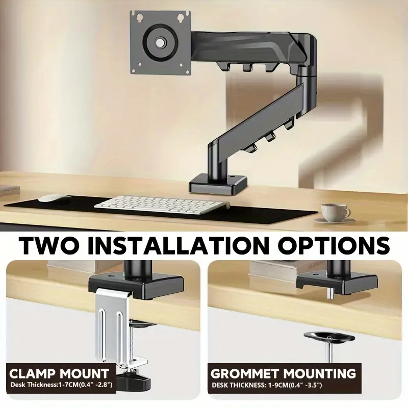 Adjustable Gas Spring Monitor Stand, Black and White Iron Computer Display Arm, Easy Install Multi-Angle Rotation, Compatible with 13-32 Inch Monitors